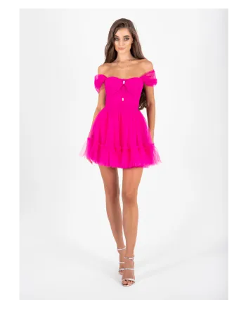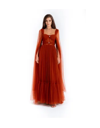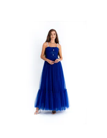 Cross Halter Neck Tulle Gown With Layered Skirt