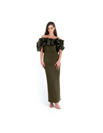 Puffy Off Shoulder Satin with Neoprene Bodycon