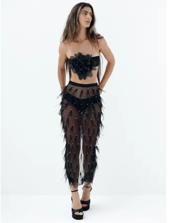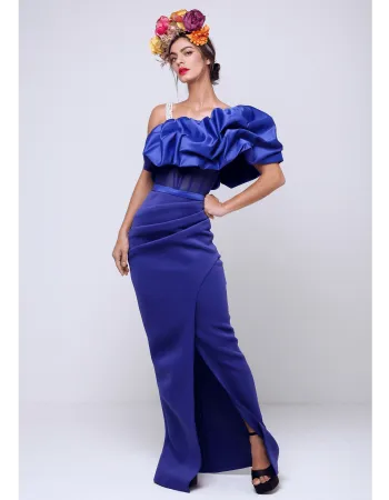 Neoprene Tulle Corset One shoulder Puffy with Pearls